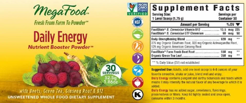 Daily Energy with beetroot powder and ginseng, Daily Turmeric with turmeric and black pepper to support healthy inflammatory response, Daily Purify to aid in your body's daily cleansing needs with burdock root and dandelion or Daily C to protect your immune system. With a wide variety of blends Mega Foods is sure to have a blend for you! Join us for samples and taste testing!