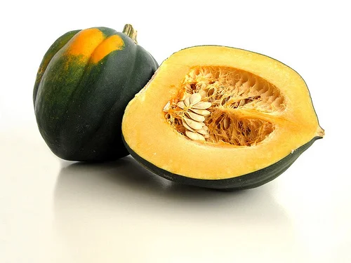 Slightly dry orange coloured flesh of the Acorn have a definite nut-like flavour. Their large seed cavities are perfect for stuffing and they are best when baked.